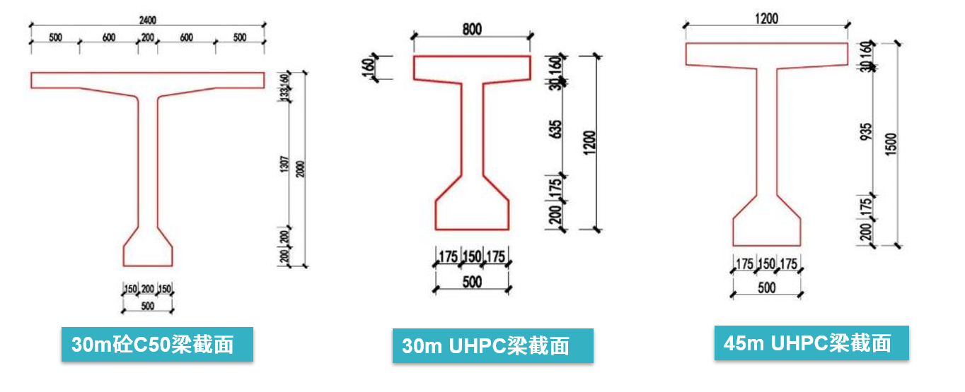 2. 45m跨UHPC梁自重约为普通砼的0.57倍