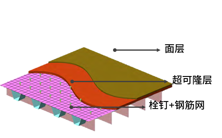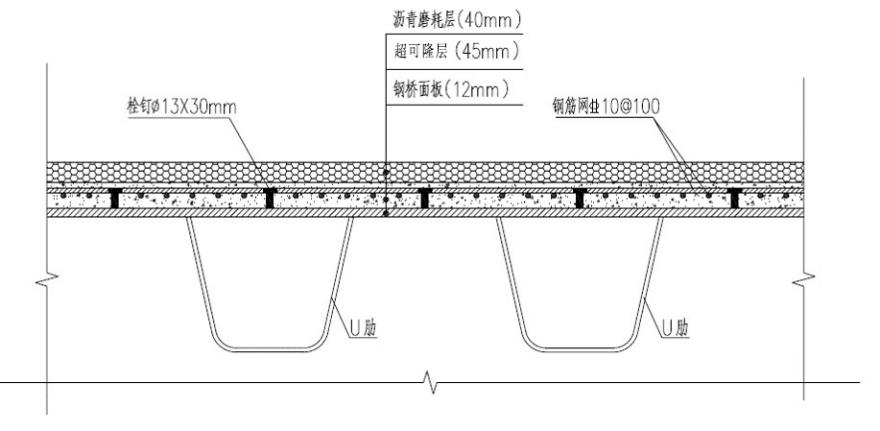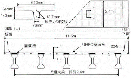 特点: UHPC铺装层耐久性好(使用年限大于20年); 提高钢板刚度(30倍),减小钢桥面的疲劳应力