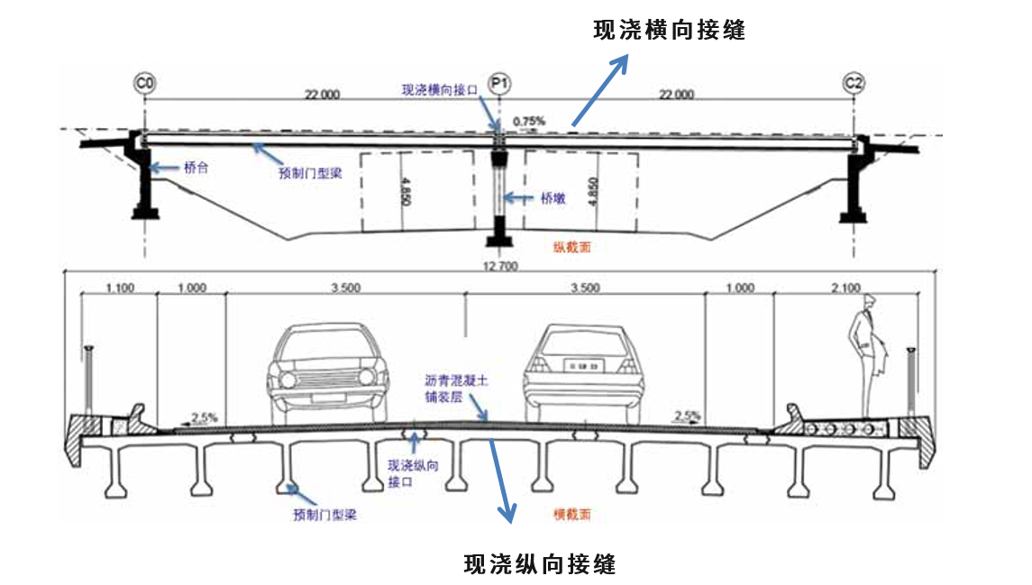 1. 整片π形预制,现场仅浇筑横纵向接缝